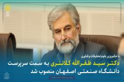 به گزارش روابط عمومی دانشگاه صنعتی اصفهان، در حکم حسین سیمایی، وزیر علوم، خطاب به دکتر کلانتری آمده است: نظر به مراتب تعّهد، تخصّص و تجارب ارزشمند جنابعالی، به موجب این حکم به عنوان «سرپرست دانشگاه صنعتی اصفهان » منصوب میشوید. از جنابعالی انتظار دارد با توکل به خداوند سبحان سرپرستی آن دانشگاه را بر پایه قوانین، سیاستها و برنامههای مصوب و سند دانشگاه اسلامی به انجام رسانید. امیدوار است با پیروی از آموزههای اسلامی، مبانی علمی، راهبرد دولت وفاق ملی و با جلب همکاری دانشگاهیان و صاحب نظران، وظایف محوله را به نحو شایسته انجام دهید. توفیق و سربلندی روز افزون جنابعالی را از درگاه خداوند متعال خواستارم.
