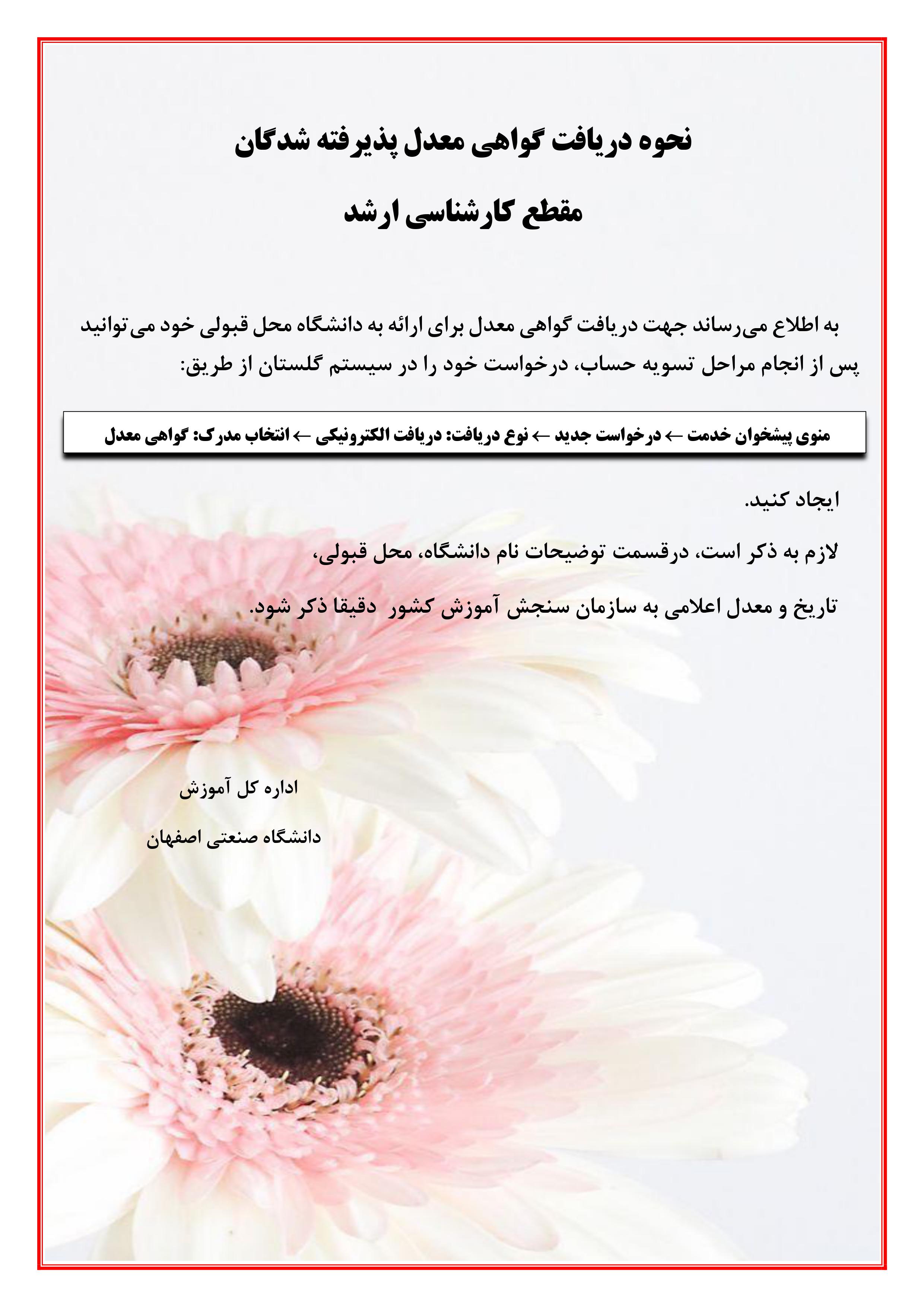 اطلاعيه نحوه دریافت گواهی معدل پذیرفته شدگان مقطع کارشناسی ارشد