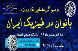 دومین گردهمایی یک روزه بانوان در فیزیک ایران، 28 اردیبهشت 1396 به میزبانی دانشگاه صنعتی اصفهان برگزار خواهد شد.