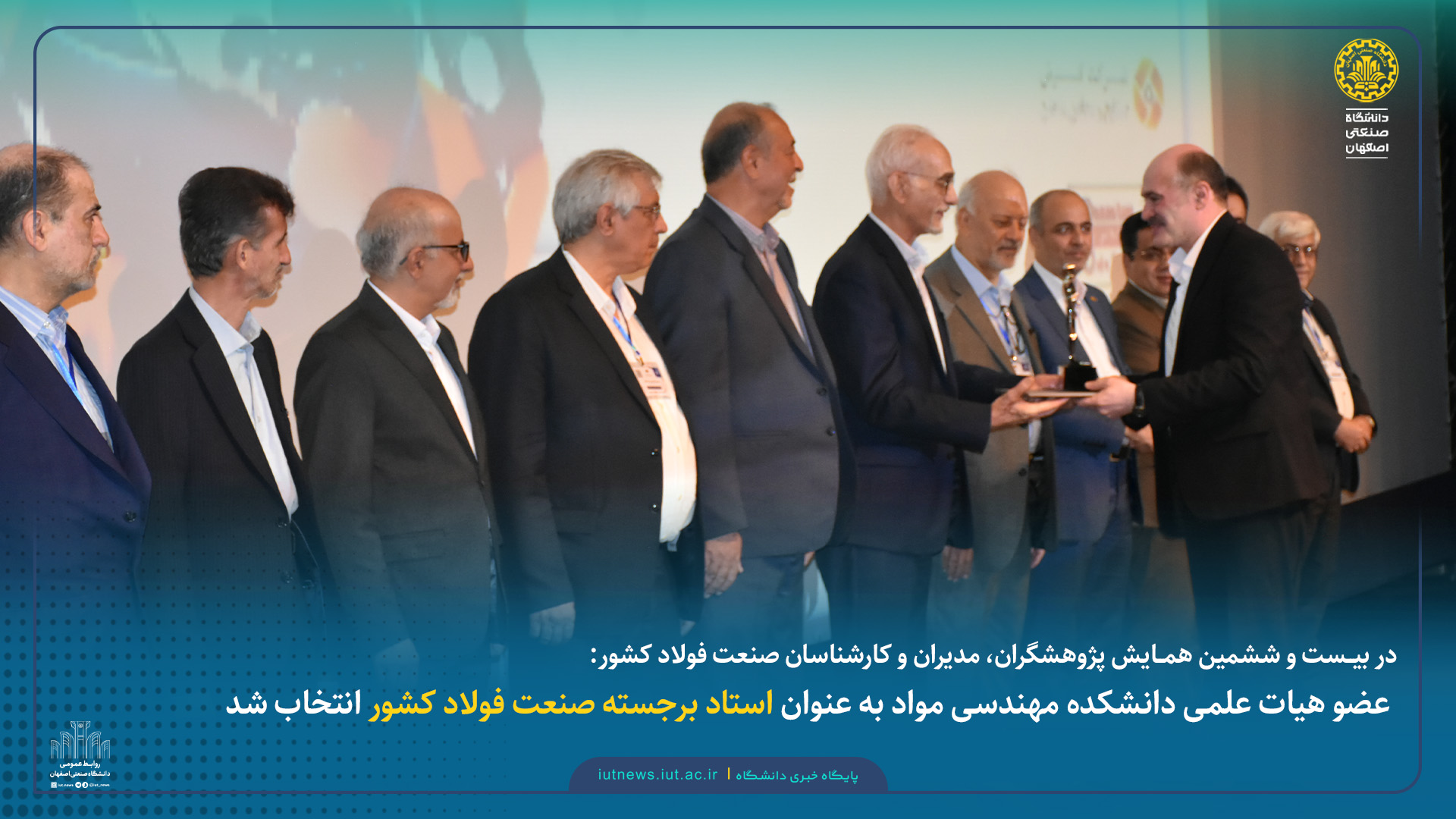 دکتر علی اشرفی دانشیار و مدیر گروه مهندسی سطح و خوردگی دانشکده مهندسی مواد دانشگاه صنعتی اصفهان، در بیــست و ششمین همــايش پژوهشگران، مدیران و کارشناسان صنعت فولاد كشور، سمپوزيوم فولاد 403 به عنوان استاد برجسته صنعت فولاد کشور در سال ۱۴۰۳ انتخاب شد.