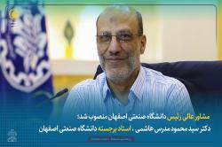 دکتر سید مهدی ابطحی، سرپرست دانشگاه صنعتی اصفهان، در حکمی دکتر سید محمود مدرس هاشمی را به عنوان مشاور عالی خود منصوب کرد.