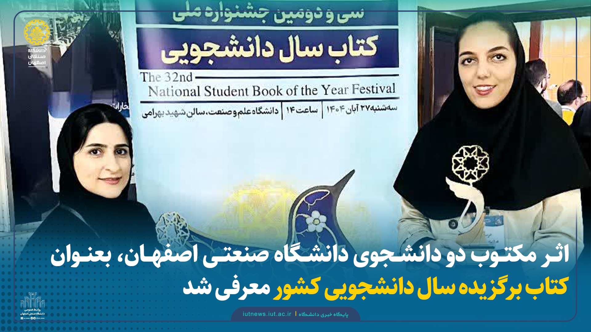 در گروه علوم کشاورزی و منابع طبیعی خانم ها، مریم مرادعباسی و مریم عبداللهی، دو دانشجوی دانشگاه صنعتی اصفهان، به سبب تألیف کتاب" روغن های خوراکی؛ ترکیب، خصوصیات، فرآوری و کاربرد" بعنوان برگزیدگان این جشنواره معرفی و از ایشان تجلیل شد.