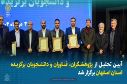 آیین تجلیل از پژوهشگران، فناوران و دانشجویان برگزیده استان اصفهان عصر امروز با حضور استاندار اصفهان و جمعی از مسئولان دانشگاههای استان برگزار شد و برگزیدگان این دوره مورد تقدیر قرار گرفتند.